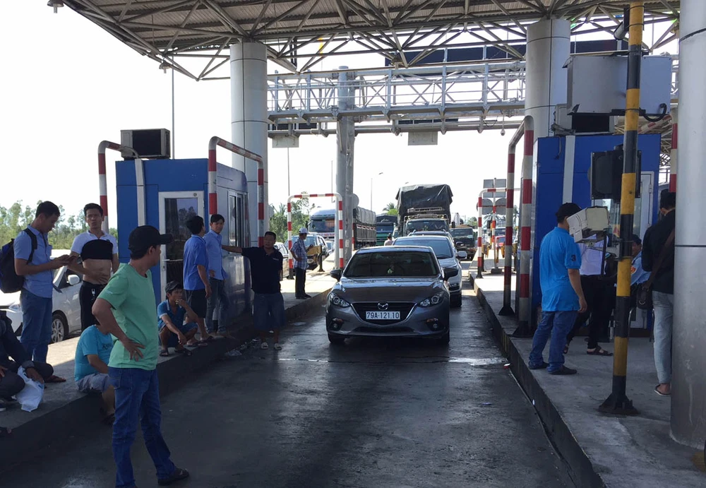 Trạm BOT Ninh Lộc thường xuyên xảy ra ùn tắc do tài xế phản đối thu phí. Ảnh: TẤN LỘC