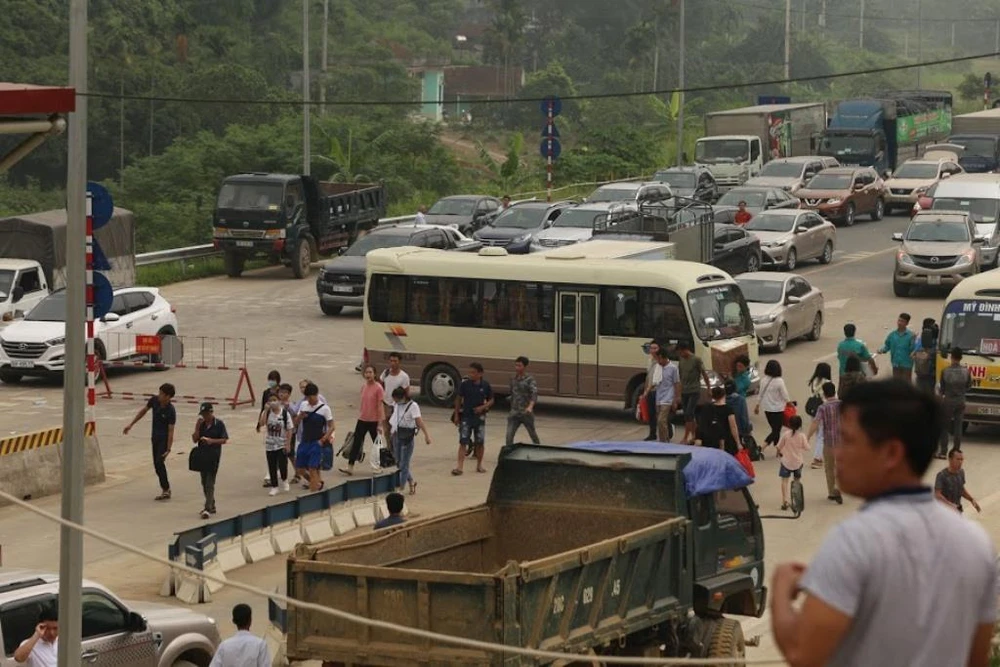 Do ùn tắc quá lâu nên nhiều người phải đi bộ qua trạm thu phí để về nhà.