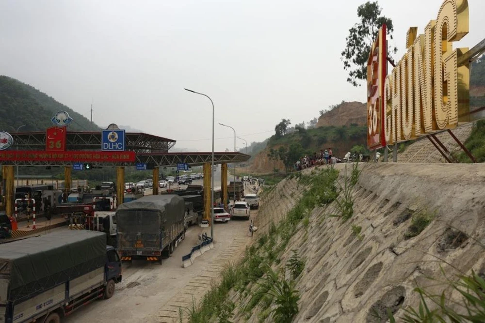 Một số người dân chấp nhận xuống xe đi bộ qua trạm thu phí.