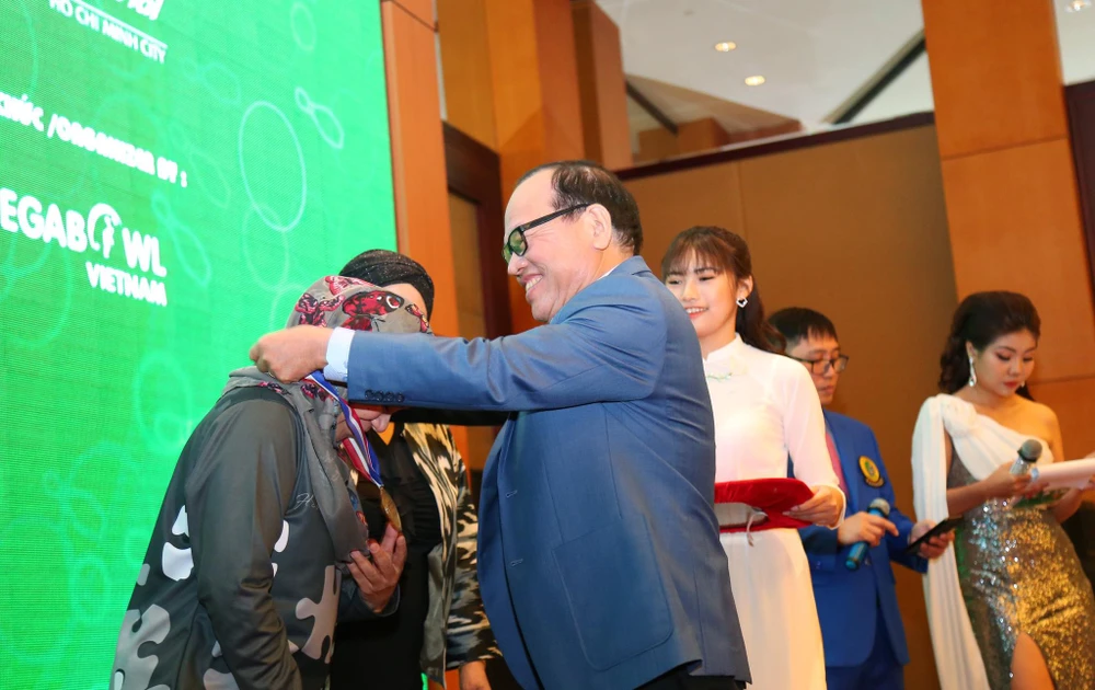 Trao huy chương cho các vận động viên đoạt giải.