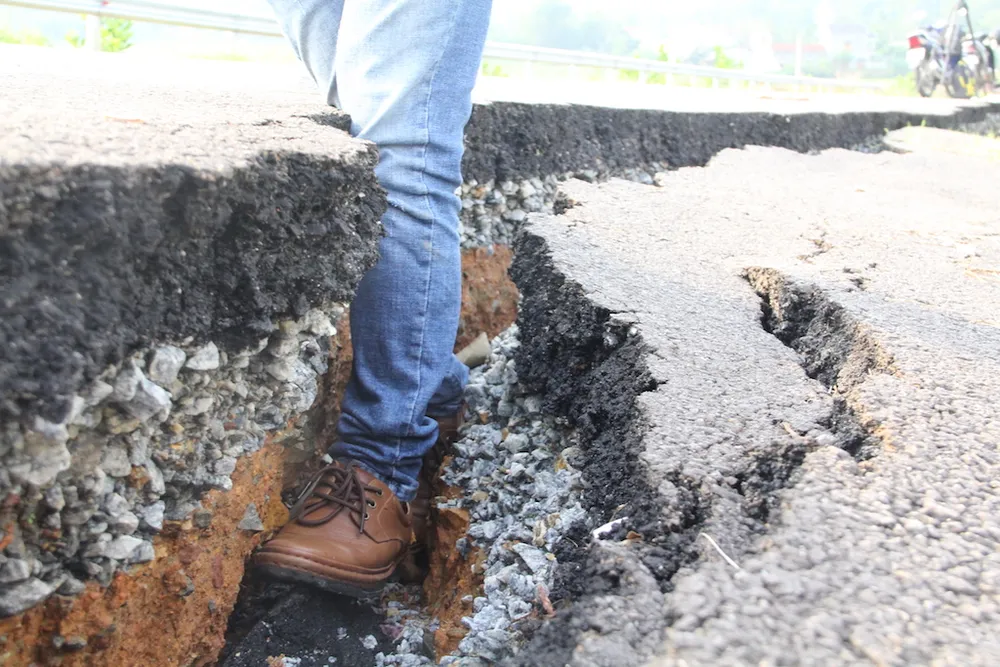 Mặt đường tách thành hai phần. Ảnh: THANH NHẬT