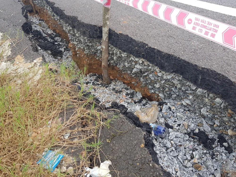 Vị trí nứt toác rộng khoảng 50 cm. Ảnh: THANH NHẬT