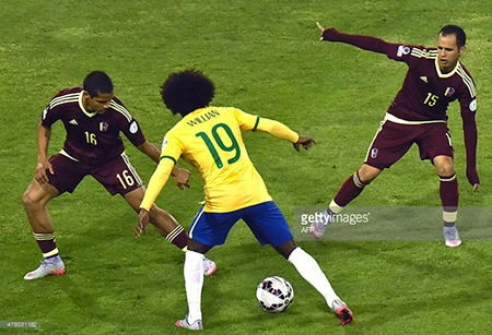 Willian hoạt động năng nổ gây khó khăn cho hàng thủVenezuela.