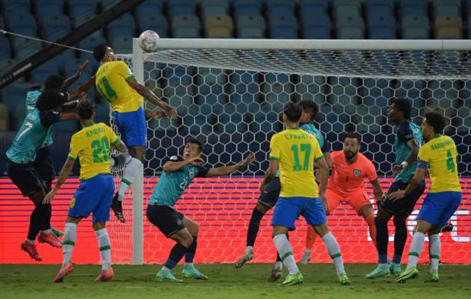 Đang mải mê tấn công tìm bàn mở tỉ số, thế nhưng Brazil mới là những người làm được điều đó trước. Pha bật cao đánh đầu đẳng cấp của Eder Militao đưa các vũ công Samba vượt lên ở phút thứ 37 của trận đấu. Bàn thắng như một gáo nước lạnh dội thẳng vào tham vọng của các cầu thủ Ecuador.