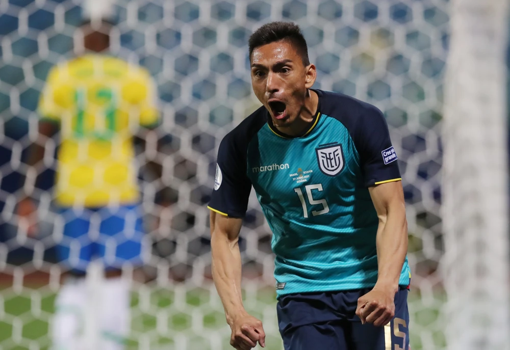 Chân sút Angel Mina sút thủng lưới chủ nhà để giúp Ecuador có suất đi tiếp. Ảnh: CGI.