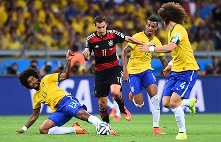 Chủ nhà chỉ đứng vững 10 phút. Và sau đấy là một cuộc thảm sát bóng đá, khi cả hàng thủ Brazil bị hút theo pha đá phạt góc để cho Mueller nhẹ nhàng chọc thủng lưới mở điểm. Đến phút 23, Klose đi vào lịch sử với bàn nhân đôi cách biệt cho tuyển Đức cũng là bàn thắng thứ 16 tại các kỳ World Cup vẫn từ sai lầm tệ hại của hàng phòng ngự Brazil.