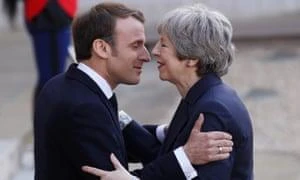 Tổng thống Pháp Emmanuel Macron và Thủ tướng Anh Theresa May trong cuộc hội đàm hôm 9-4. Ảnh: THE GUARDIAN