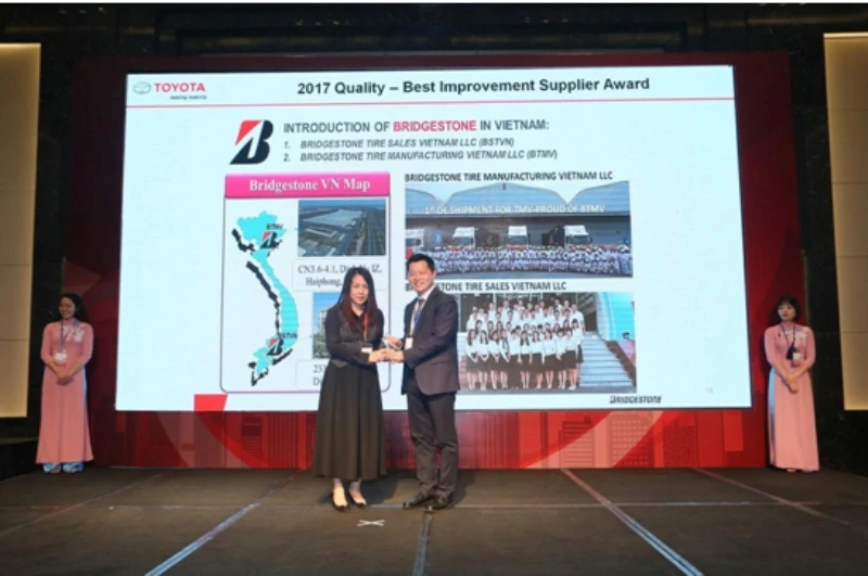 Công ty TNHH Kinh doanh lốp xe Bridgestone Việt Nam và Công ty Sản xuất lốp xe Bridgestone Việt Nam (Bridgestone Việt Nam) vừa được Toyota Việt Nam trao danh hiệu “Nhà cung cấp chất lượng nhất năm 2017”. Trong tổng số 40 nhà cung cấp trên các hạng mục khác nhau cho Toyota Việt Nam trong suốt năm 2017, Bridgestone xuất sắc trở thành nhà cung cấp chất lượng nhất.
