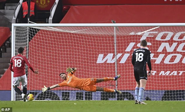 Ở trận đấu này, Bruno không thực hiện cách đá 11m “nhảy chân sáo” quen thuộc. Tiền vệ người Bồ Đào Nha tung cú sút chìm quyết đoán vào góc trái không cho thủ môn Martinez của Aston Villa cơ hội cản phá nào.