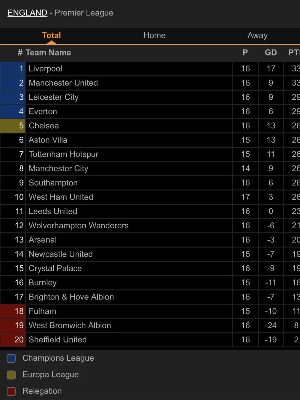Đánh bại Aston Villa với tỷ số 2-1 tại Old Trafford, MU tiếp tục bám đuổi Liverpool. Sau vòng 17, MU có cùng 33 điểm với Liverpool, nhưng thua “The Kop” về mặt hiệu số bàn thắng nên chỉ đứng thứ 2 BXH.