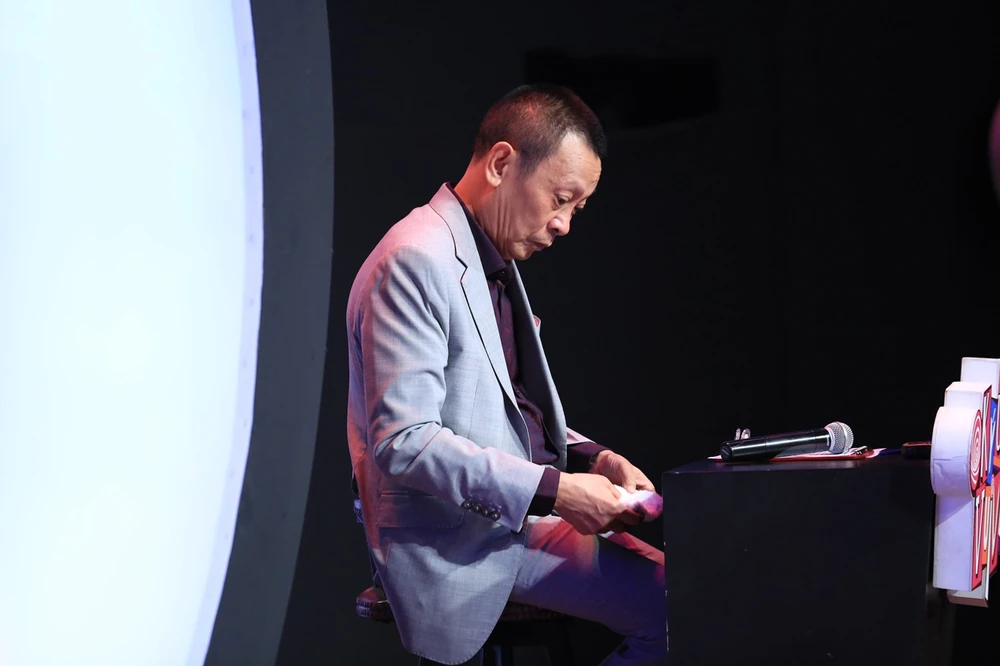 Sau giây phút bồi hồi, MC Lại Văn Sâm kể lại câu chuyện lần đầu tiên gặp BTV Quang Minh cũng chính được bố anh dẫn đến.