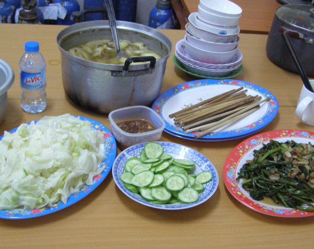 Thấy chúng tôi nhìn chăm chăm bàn ăn, chị Lương nói tiếp: “Chắc anh ngạc nhiên khi thấy thức ăn quá đạm bạc. Đành phải thế, tiền lương đâu nhiều nên phải ăn uống đơn giản anh à”.