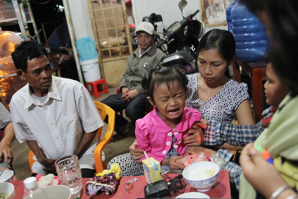 Ba cha con anh Vũ Đình Khiên không kìm được nước mắt trong lúc phải chia tay con gái nuôi Lan Anh. Ảnh: HOÀNG GIANG