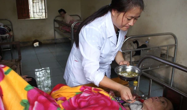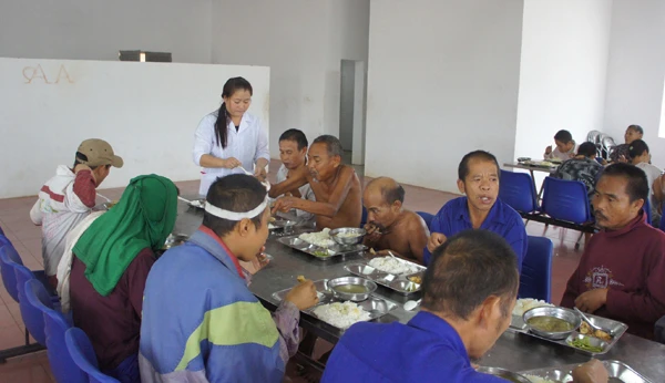 Bệnh nhân tâm thần nặng được đưa cơm và thức ăn đến tận phòng ở.