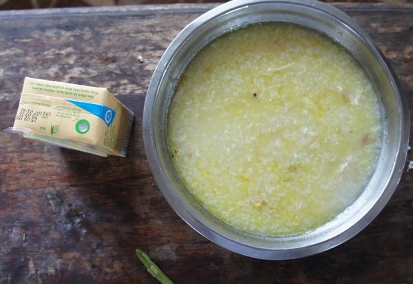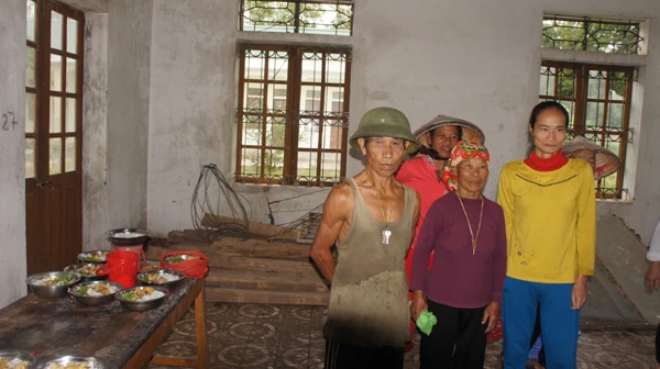 Những người ốm, sức khỏe yếu được phục vụ cháo và hộp sữa/bữa ăn.
