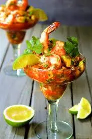 Món ăn đậm chất phương tây gồm coctail tôm và bánh lava. Ảnh minh họa