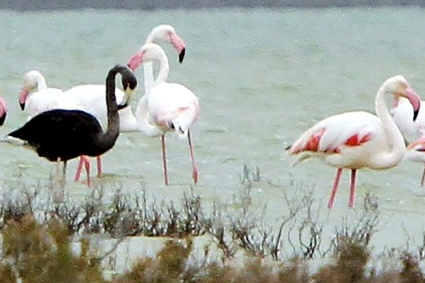 Chú hồng hạc đen đang sinh sống cùng với những người bạn “hồng” của mình (Nguồn: Mirror)