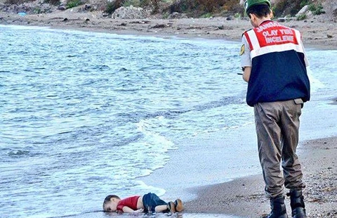 Báo chí châu Âu xuất bản ngày 3-9 cùng đăng một bức ảnh trên trang nhất. Đó là ảnh một bé trai nằm chết trên bãi biển Bodrum (Thổ Nhĩ Kỳ). Em nằm úp mặt, thân thể ướt mem nước biển.