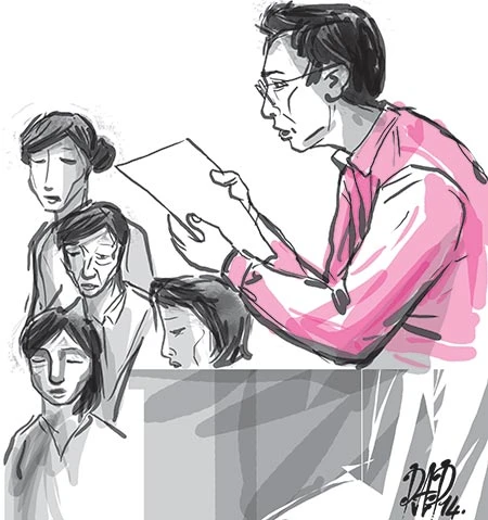 Với giọng trầm, ấm, chủ tọa đọc bức di thư khiến người nghe dù không liên quan vẫn thấy xúc động, nghẹn lòng. Thư có đoạn: