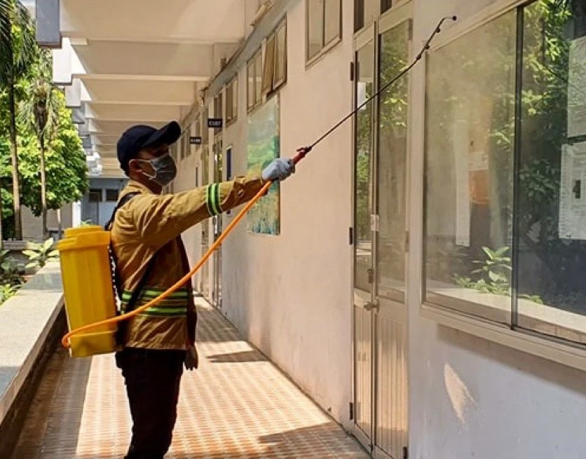 Nhà trường tăng cường sát khuẩn các phòng ốc để phòng, chống dịch COVID-19. Ảnh: Nhà trường cung cấp