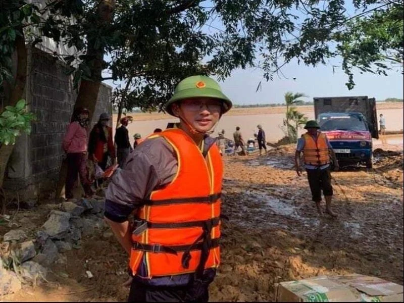 Thầy hiệu trưởng Hà Văn Quý trong trận lũ lịch sử giữa tháng 10 vừa qua ở huyện Quảng Ninh, tỉnh Quảng Bình.