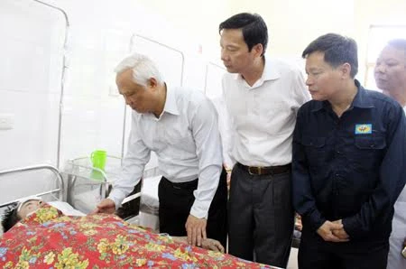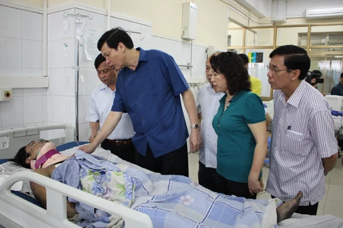 Phó Chủ tịch Quốc hội Uông Chu Lưu thăm hỏi các nạn nhân trong vụ bục túi nước. QNP