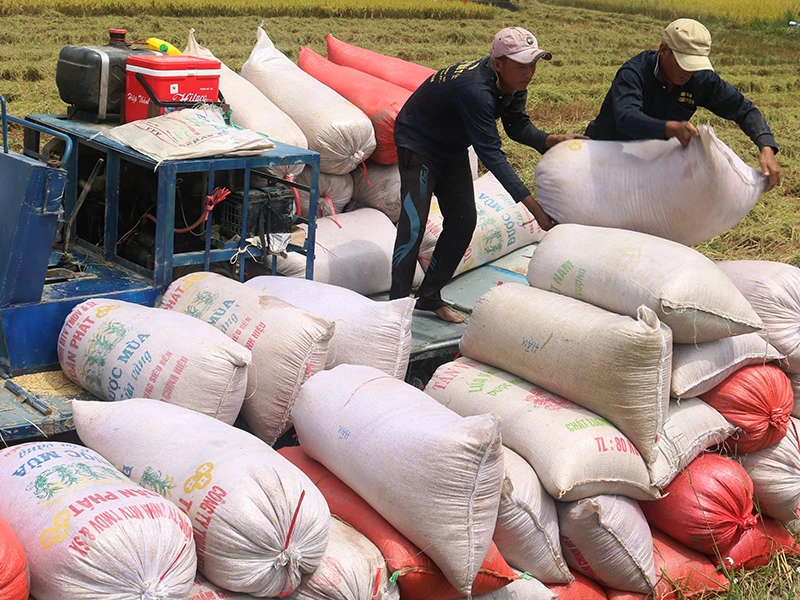 Trong tháng 4, Việt Nam sẽ xuất khẩu 400.000 tấn gạo. Trong ảnh: Hiện lúa gạo trong dân còn rất nhiều. Ảnh: GIA TUỆ