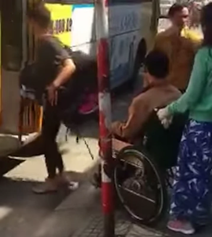 Dù đã xếp hàng và chờ ở trạm dừng, nhưng người khuyết tật này vẫn bị tài xế từ chối chở. Ảnh: Cắt từ Clip.