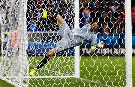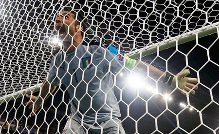 Trong khi các cầu thủ khác của tuyển Ý tập trung thành một nhóm cùng nhau ăn mừng chiến thắng đầu tay 2-0 của Ý trước Bỉ, thì thủ thành Buffon có hành động ăn mừng riêng đầy phấn khích. Anh chạy dọc sân rồi nhảy lên xà ngang đánh đu và trượt tay té ngã.
