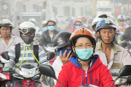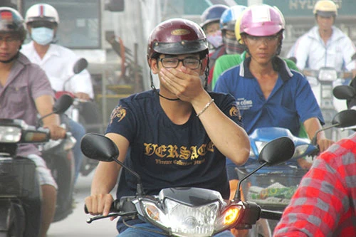 Những người đi xe máy qua đoạn đường này phải nhăn mặt, chau mày, dùng tay che kín mặt dù đã đeo khẩu trang, mang kính.