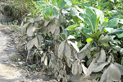 Bụi biến nhiều cây ven đường Song hành xa lộ Hà Nội từ màu xanh thành màu trắng đục