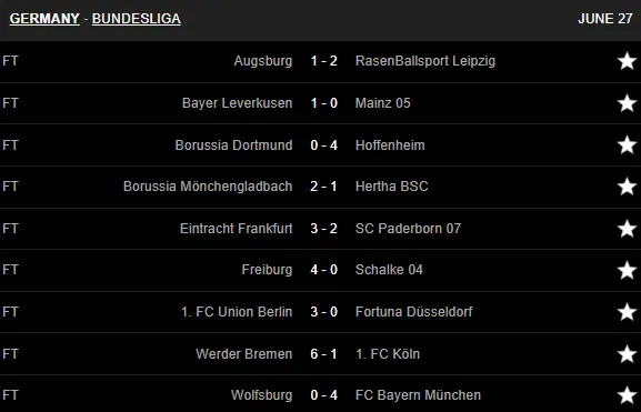 Đúng 20h30 đêm nay (27-6), các trận đấu ở vòng cuối cùng Bundesliga đã đồng loạt diễn ra trên khắp các sân cỏ nước Đức.