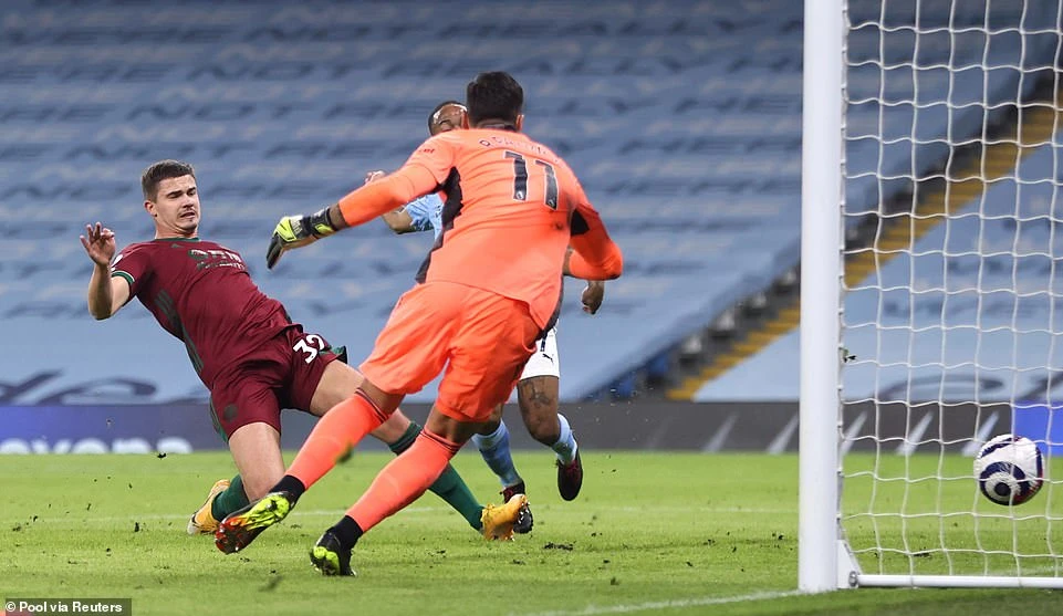 Xuất phát từ tình huống phát bóng giữa sân, tiền đạo Mahrez thực hiện đường căng ngang trong vòng cấm cho Sterling. Trong tình huống ngăn chặn, trung vệ Dendonker đã biếu không bàn thắng, giúp Man. City vươn lên dẫn trước với tỷ số 1-0.