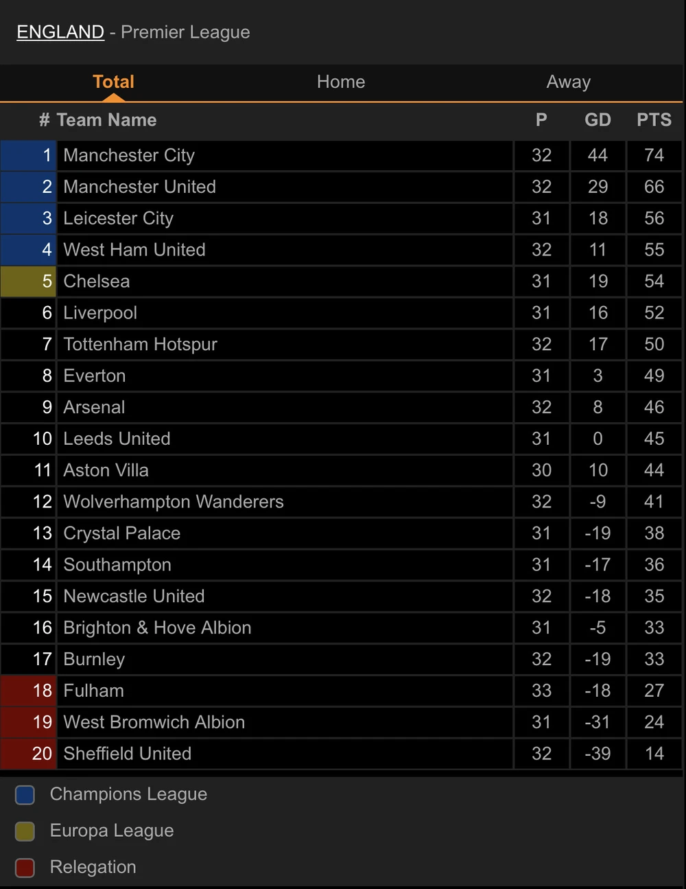 Giành chiến thắng 3-1 trước Burnley trên sân nhà Old Trafford, MU giữ vững vị trí thứ hai với 66 điểm sau 32 vòng đấu, trong khi đó Burnley có 33 điểm đứng vị trí thứ 17.