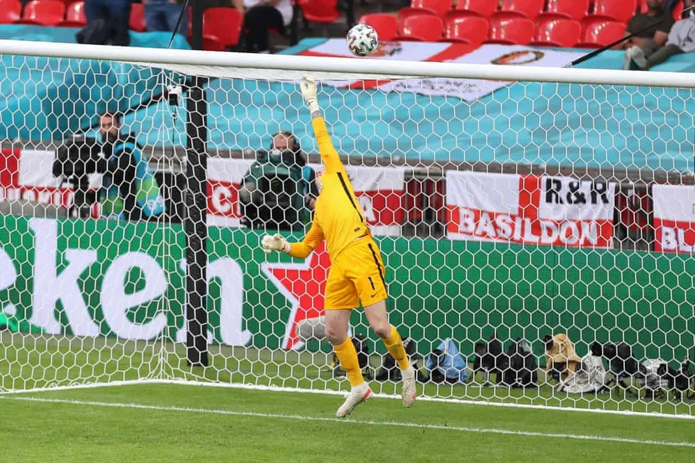 Pickford tiếp tục chơi tốt để cứu thua cho tuyển Anh đầu hiệp hai. Ảnh: Euro 2020 Newpapers Pool.