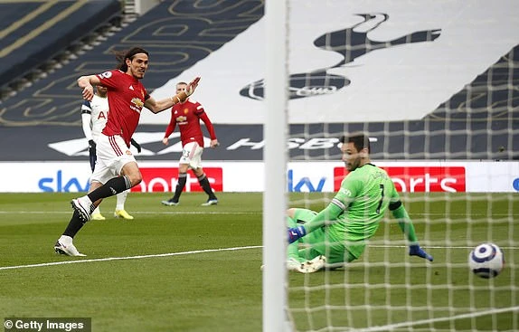Vừa ghi được bàn giúp MU vươn lên dẫn trước, Cavani suýt trở thành tội đồ khi đánh đầu khiến khung thành của “quỷ đỏ” chao đảo. Phút 84, từ tình huống Tottenham được hưởng phạt góc, Cavani đánh đầu cứu thua nhưng lại đưa bóng tìm đến xà ngang khung thành của thủ môn Henderson.