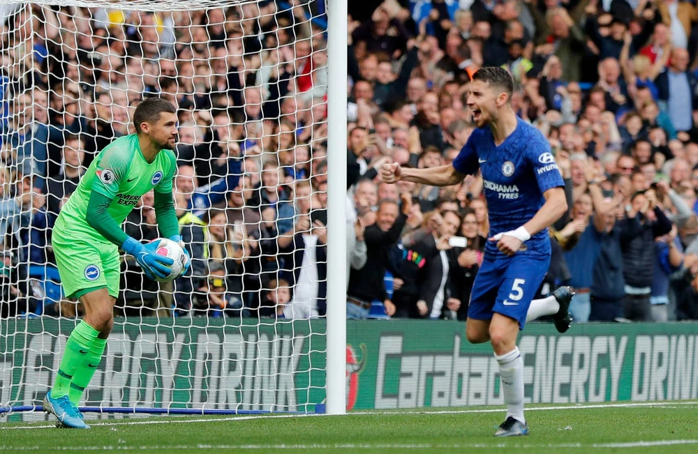 Trên chấm 11 mét, tiền vệ Jorginho không bỏ lỡ cơ hội để đánh bại thủ môn Ryan giúp Chelsea vươn lên dẫn 1-0.