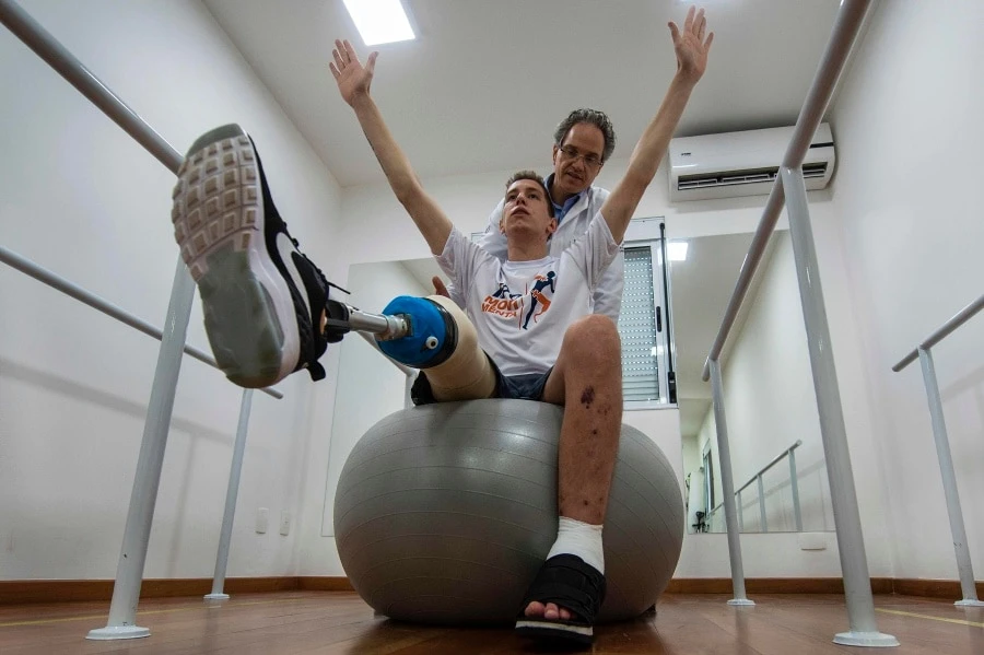 Chiếc chân phải của anh bị gãy phải cưa bỏ, gối trái bị tổn thương rất nặng, gãy nhiều xương, trong đó có xương sườn.