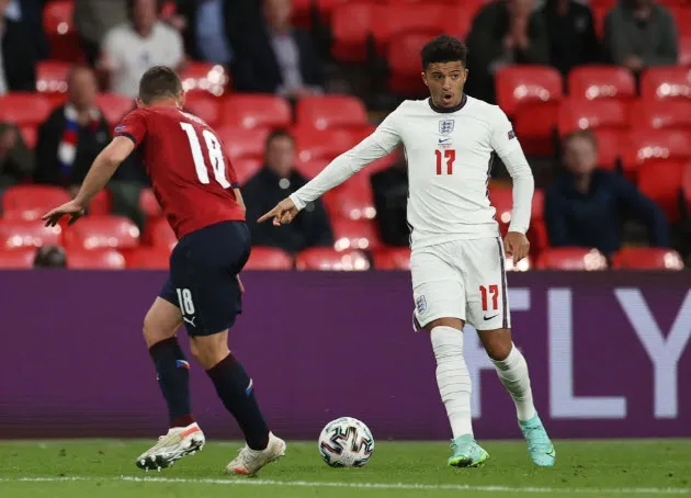 Sancho mới ra sân 6 phút ở vòng bảng Euro 2020 cùng tuyển Anh. ẢNH: GETTY