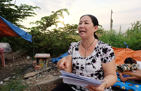 do cha mẹ để lại và được cấp giấy chứng nhận quyền sử dụng đất năm 1999. Năm 2003, toàn bộ khu đất trên nằm trong quy hoạch đất cây xanh. Giữa năm 2015, quy hoạch này được bãi bỏ nhưng phần đất của bà vẫn còn 170 m2
