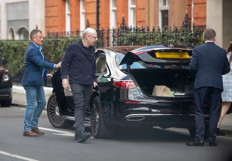 Avram Glazer đến khách sạn của gia đình Sheikh Jassim và rời đi trên chiếc Mercedes. ẢNH: MIRROR |