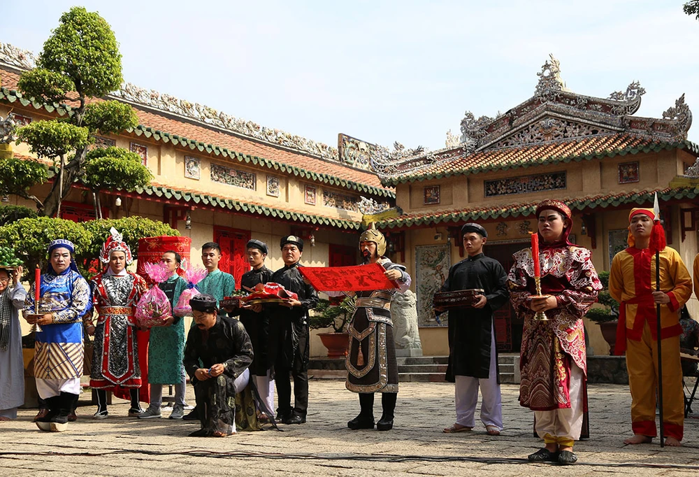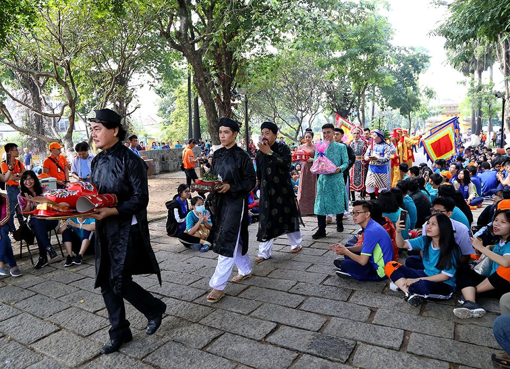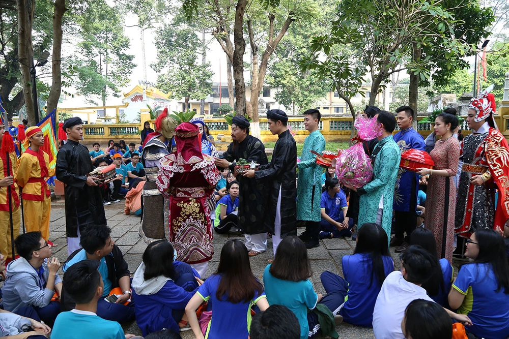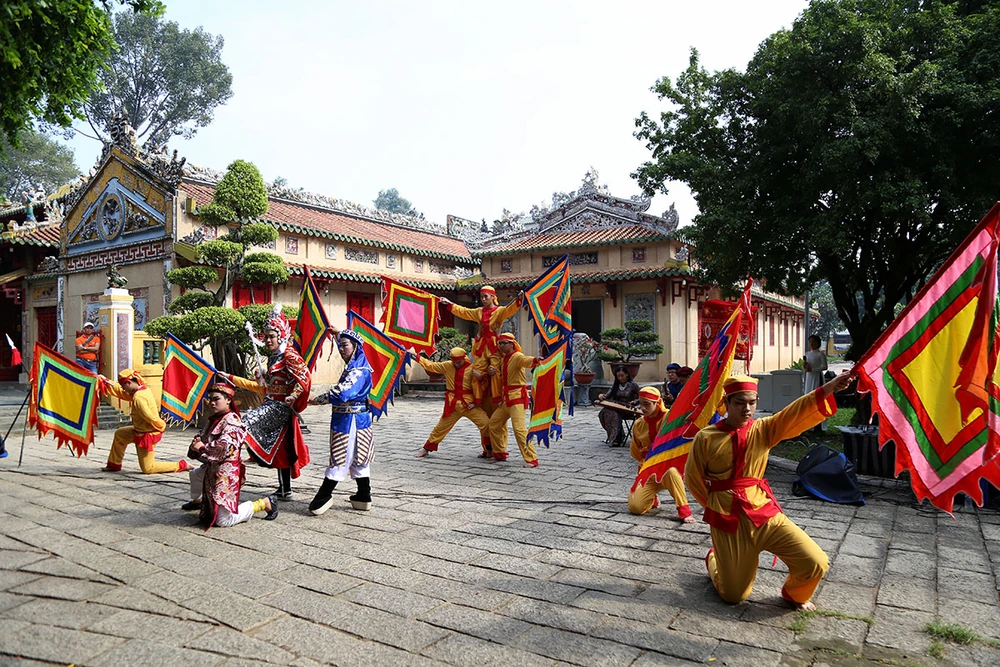 Hoạt cảnh cung nghinh đức Lễ thành hầu Nguyễn Hữu Cảnh do thành viên một CLB và học sinh, giáo viên Trường THPT Nguyễn Du thực hiện.