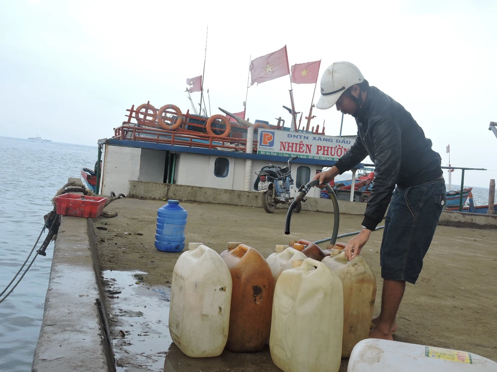 Chuẩn bị nhiên liệu cho tàu cá ra khơi.