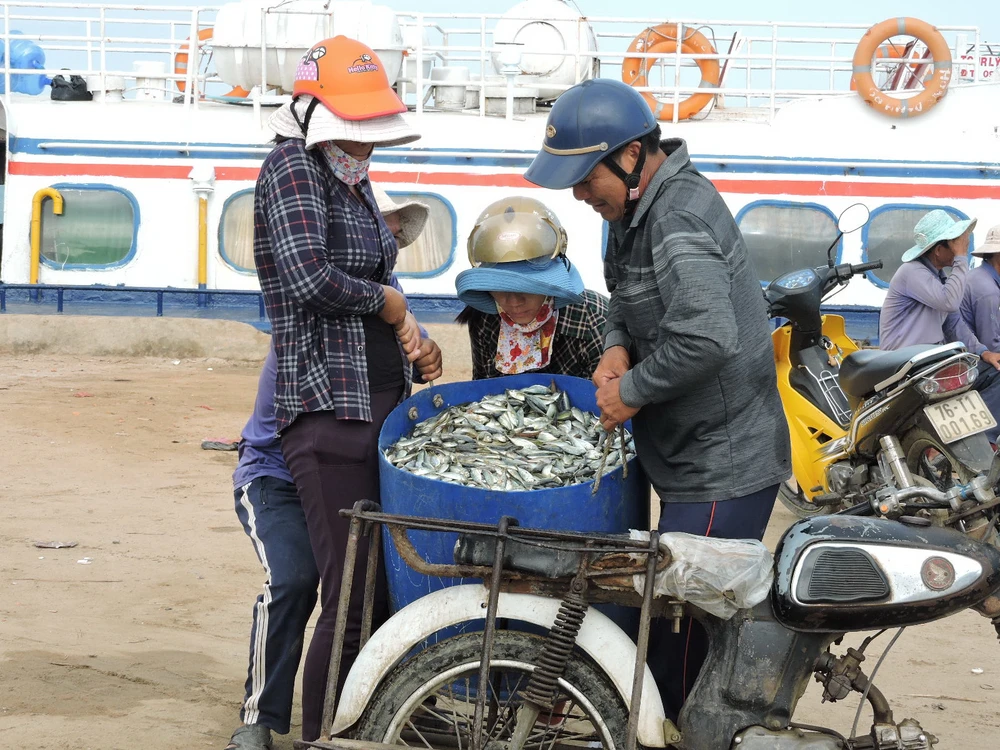 Chuyển cá đánh bắt được vào đất liền tiêu thụ.