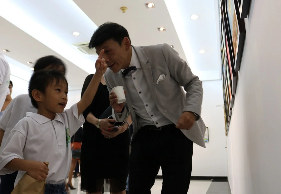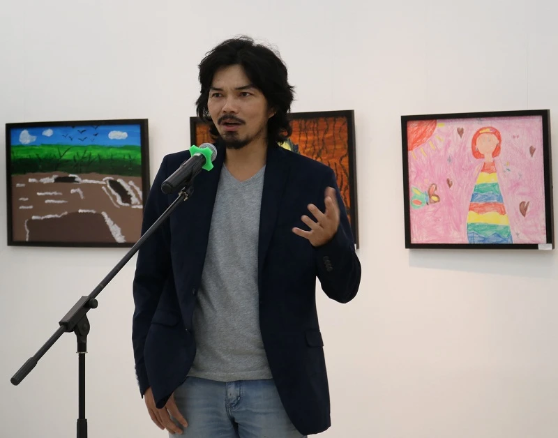 Họa sĩ Trung Nghĩa cho rằng mỗi bức ảnh tại triển lãm là một phần trong ký ức tuổi thơ của chính các em. Ảnh: THANH TUYỀN