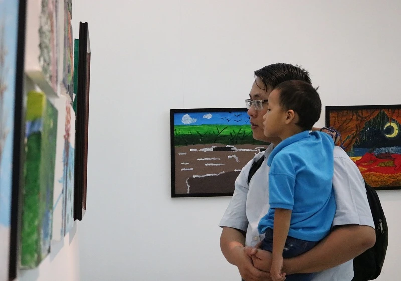 Em Lê Minh Nghĩa (chín tuổi), tác giả của bức tranh “Tàu phá băng”, vốn là một đứa trẻ mắc bệnh tự kỷ nhưng khi tham gia vào những hoạt động ngoài trời, gắn bó với thiên nhiên, Nghĩa trở nên hoạt bát hơn. Bức tranh em vẽ là toàn bộ những mảng ký ức chắp vá, không cụ thể. Khi hỏi Nghĩa về ý nghĩa bức tranh, em chỉ cười và bảo không thể trả lời được. Chính nét hồn nhiên, trong sáng của những đứa trẻ như Nghĩa là điểm níu giữ nhiều người đến với triển lãm này.