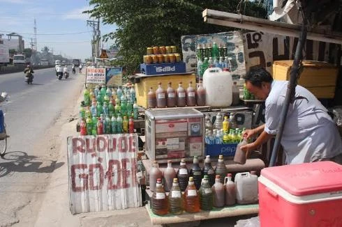 Trên đường đi từ Long An đến TP.HCM rất dễ dàng bắt gặp được những cửa hàng bán rượu tràn lan ngoài đường. Tôi ghé 1 cửa hàng ở Gò Đen để hỏi mua rượu thì được một chú ra chào và giới thiệu đon đả về các loại rượu nhà làm đựng trong những chai nhựa không nhãn mác. Tôi hỏi về tem nhãn và nguồn gốc xuất xứ thì chú trả lời “Rượu nhà chú nấu mà cháu, đảm bảo lắm, cần gì tem. Xưa giờ bao nhiêu người uống rồi có ai bị làm sao đâu mà!”.