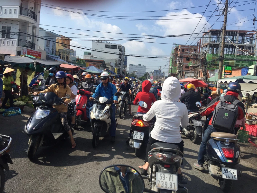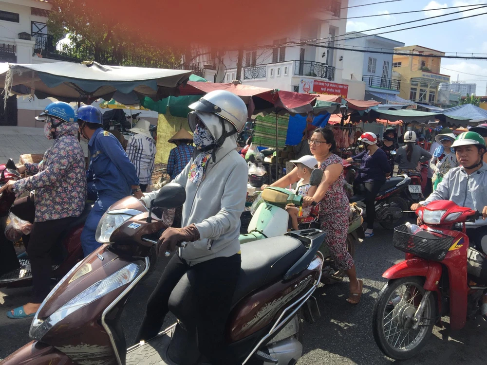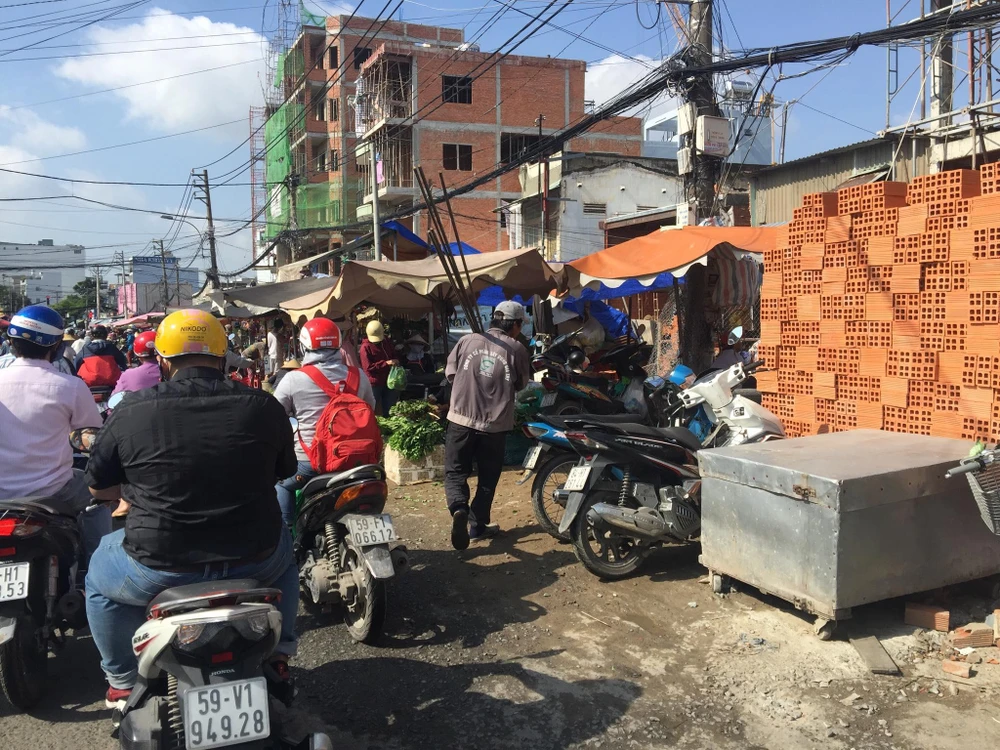 Người mua dựng xe máy xuống chọn đồ, giao thông thì bát nháo.
