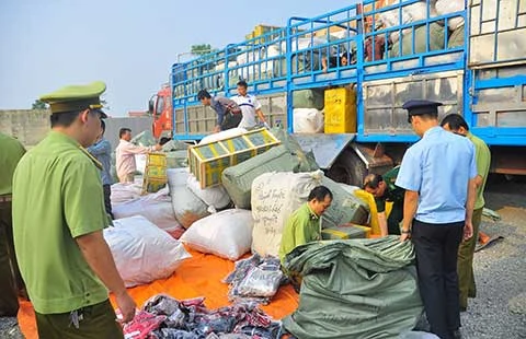 Lực lượng chống buôn lậu kiểm tra một vụ chở hàng lậu. Ảnh: TA