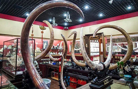 Ngà voi được bày bán trong một cửa hàng tại Trung Quốc. Ảnh: TELEGRAPH